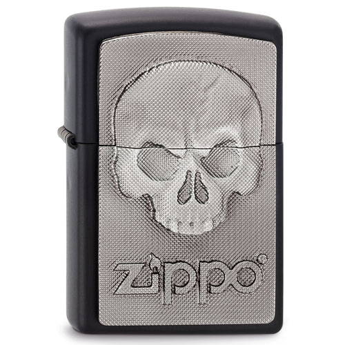 Zippo Phantom Skull Emblem met Zippo code 2.003.546. De skull en het zippo logo staan in 3D op de voorzijde van de Zippo. Verder is de zippo mat zwart afgewerkt.