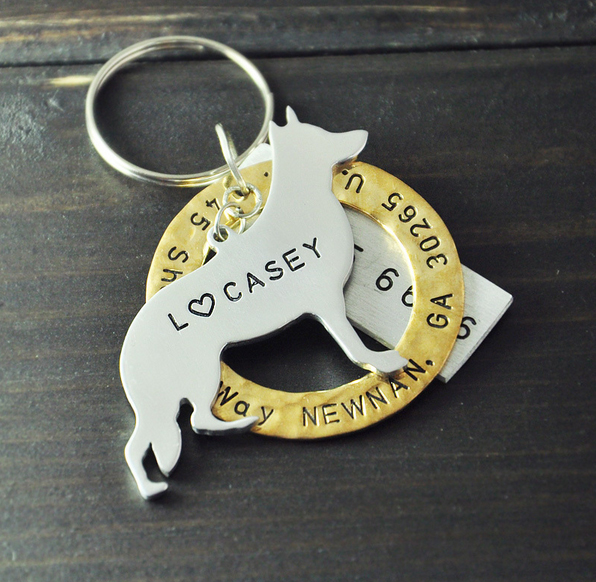 Dierenpenning Duitse herder rond. Op de hondenpenning wordt een naam gegraveerd. Achter de...