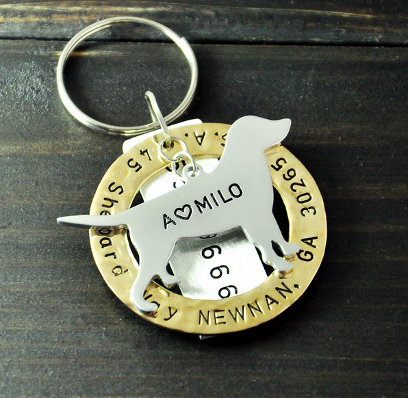 Dierenpenning Teckel rond. Op de hondenpenning wordt een naam gegraveerd. Achter de hondenpenning...