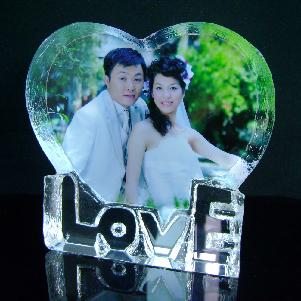 Uit jullie liefde met dit prachtige hartvormige fotokristal. Het kristal is 10x10x2cm groot en bevat de tekst ''Love'' welke onder de het hart is geplaatst. Het kristal weegt maar liefst 400gram en blijft stevig staan door de vlakke onderzijde.