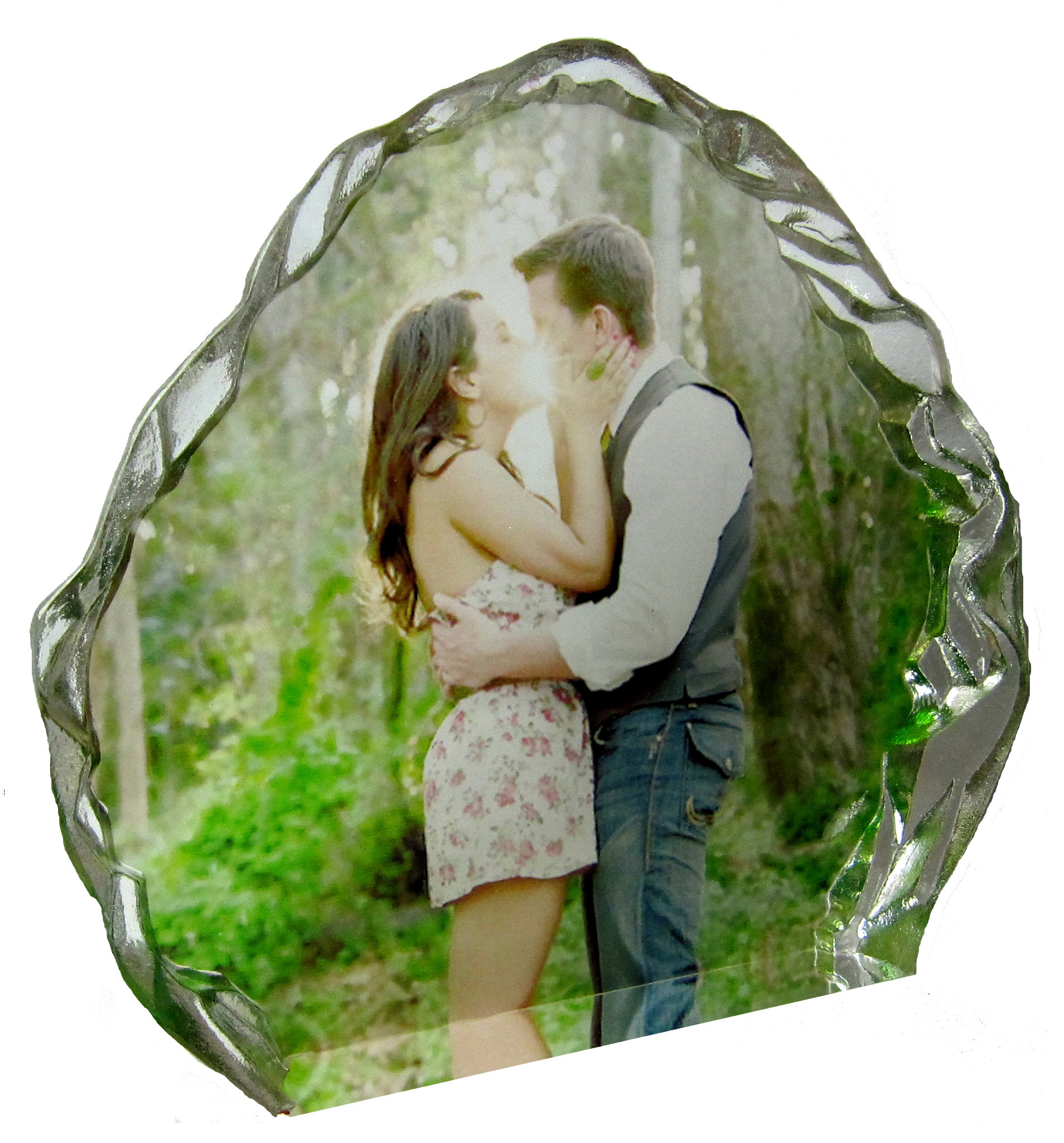 Prachtig fotokristal in de vorm van een ijsberg. Het kristal is 10x9,5cm groot. Uw eigen foto wordt in kleur aangebracht met een speciale printtechniek. De foto blijft licht doorzichtig wat een prachtig effect geeft.