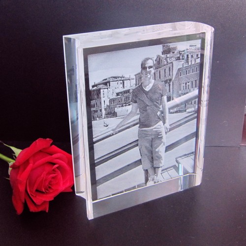 Boek kristal inclusief het graveren van een foto of logo. De afbeelding wordt op hoge kwaliteit met een speciale laser middenin het kristal gegraveerd. De gravure is hierbij langs zowel de voorkant als achterkant goed zichtbaar.