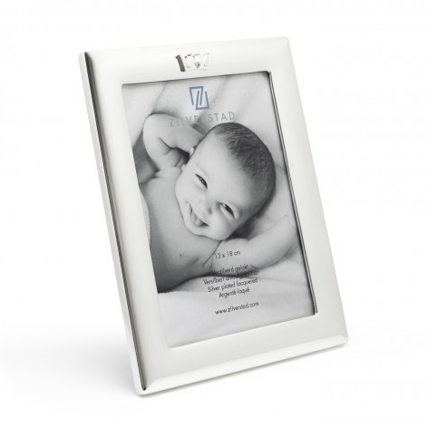 Verzilverde fotolijst van het merk Zilverstad met een kroontje aan de bovenzijde met een fotoformaat van 13x18cm. Laat de fotolijst graveren met een tekst in een lettertype naar keuze. De graveertekst voegt u eenvoudig toe in de volgende stappen.