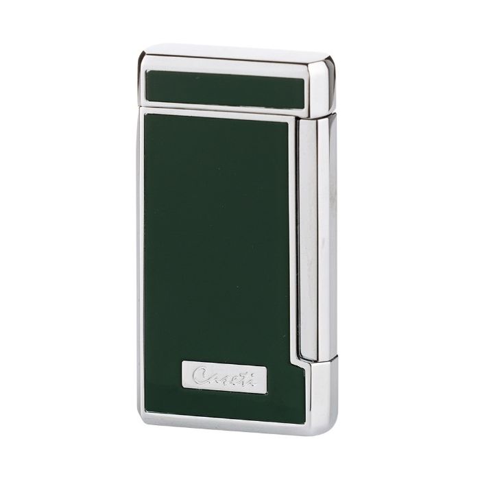 Deze Caseti aansteker heeft een Groene afwerking met een chromen rand. Deze aansteker heeft een elektrische ontsteking. De aansteker geeft een krachtige dubbele jetflame, waarvan de vlamhoogte instelbaar is.