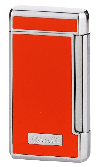 Deze Caseti aansteker heeft een Oranje afwerking met een chromen rand. Deze aansteker heeft een elektrische ontsteking. De aansteker geeft een krachtige dubbele jetflame, waarvan de vlamhoogte instelbaar is.