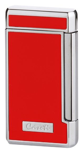 Deze Caseti aansteker heeft een rode afwerking met een chromen rand. Deze aansteker heeft een elektrische ontsteking. De aansteker geeft een krachtige dubbele jetflame, waarvan de vlamhoogte instelbaar is.