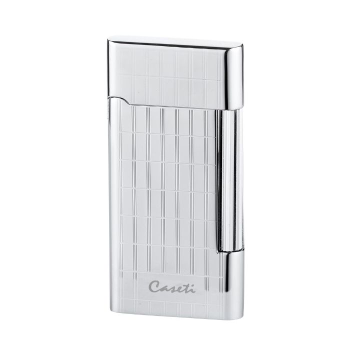 Deze Caseti aansteker heeft een Chrome afwerking met een strepen. Deze aansteker heeft een vuursteen ontsteking. De aansteker geeft een mooi zachter vlam, waarvan de vlamhoogte instelbaar is.