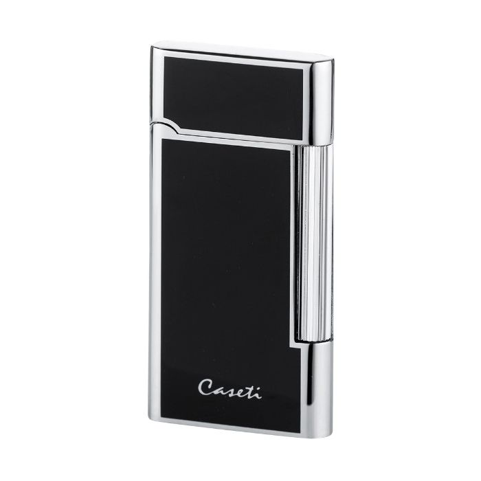 Deze Caseti aansteker heeft een zwarte afwerking met een chromen rand. Deze aansteker heeft een vuursteen ontsteking. De aansteker geeft een mooi zachter vlam, waarvan de vlamhoogte instelbaar is.
