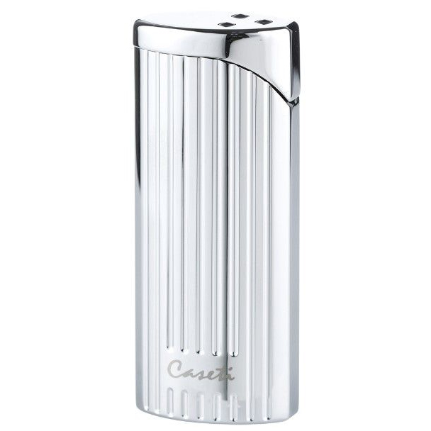Prachtige Caseti Triple jetflame aansteker in de kleur chroom hoogglans chroom.  Aan de voorzijde en achterzijde heeft deze aansteker prachtige verticale lijnen. Deze aansteker heeft een elektrische ontsteking. De aansteker geeft 3 krachtige jetflame vlammen. De vlamhoogte is instelbaar.