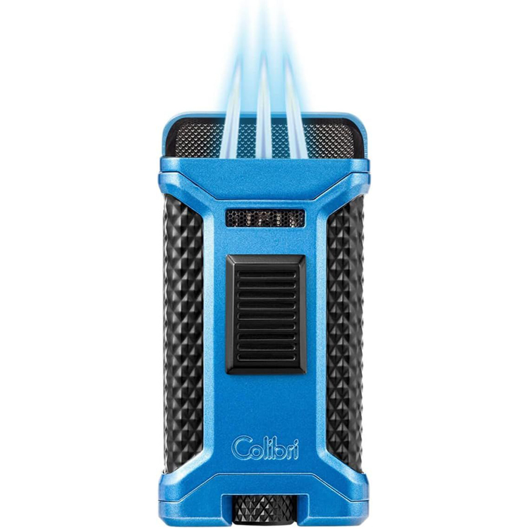 Colibri aansteker triple flame Ascari zwart-blauw. Deze Colibri aansteker heeft een krachtige Triple-Jet flame en een electronische ontsteking. De aansteker werkt op butaangas. De aansteker is eenvoudig te bedienen door de grote knop aan de voorkant en de grote vlamregelaar aan de onderzijde waarmee u de sterkte van de vlam in kunt stellen. De zijkant bevat een blauwe gas indicator.