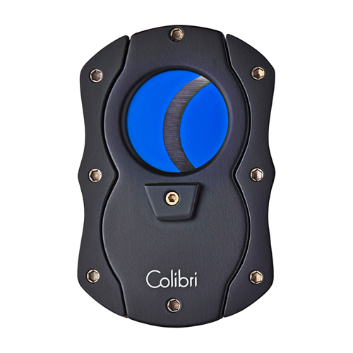 Deze luxe zwart/blauw sigarenknipper Colibri Cut Blades is voorzien van twee snijmessen van blauwkleurig gehard roestvrij staal.