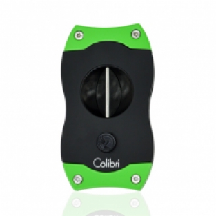 Deze luxe zwart/groen sigarenknipper Colibri V-Cut Black is voorzien van twee snijmessen van roestvrij staal.