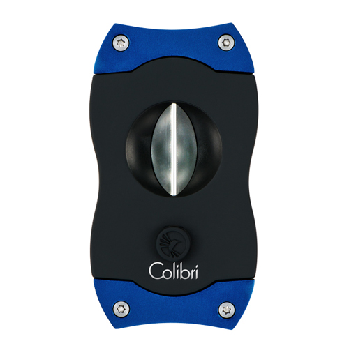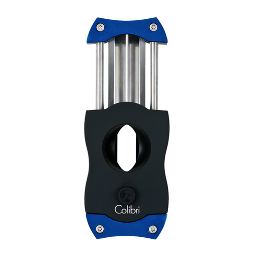 Deze luxe blauwe sigarenknipper Colibri V-Cut Blue is voorzien van twee snijmessen van roestvrij staal.