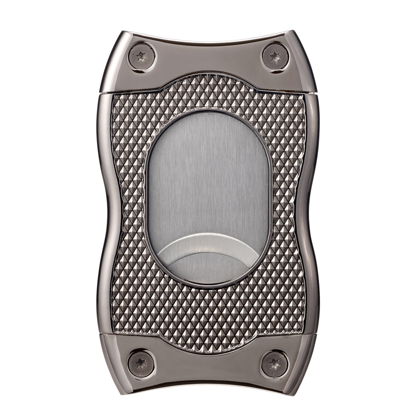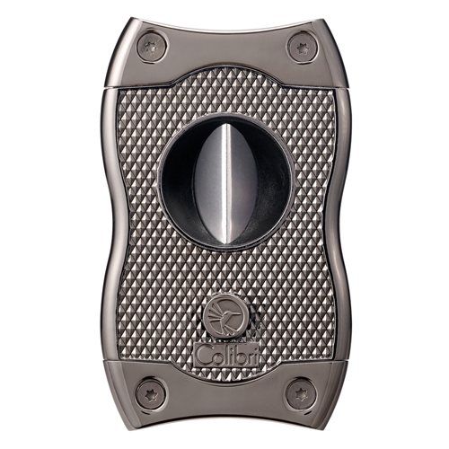 Deze luxe sigarenknipper Colibri V-Cut Gunmetal is voorzien van twee snijmessen van roestvrij staal.