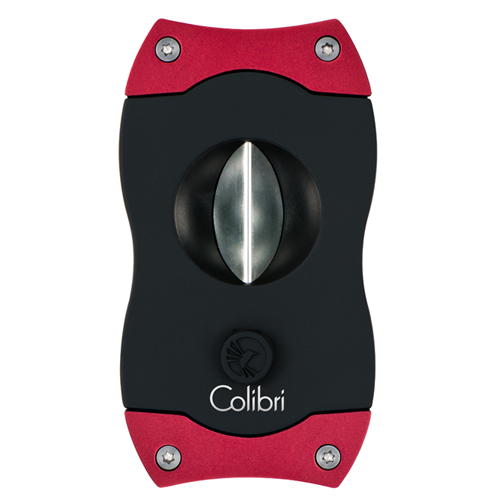 Deze luxe rode sigarenknipper Colibri V-Cut Red is voorzien van twee snijmessen van roestvrij staal.