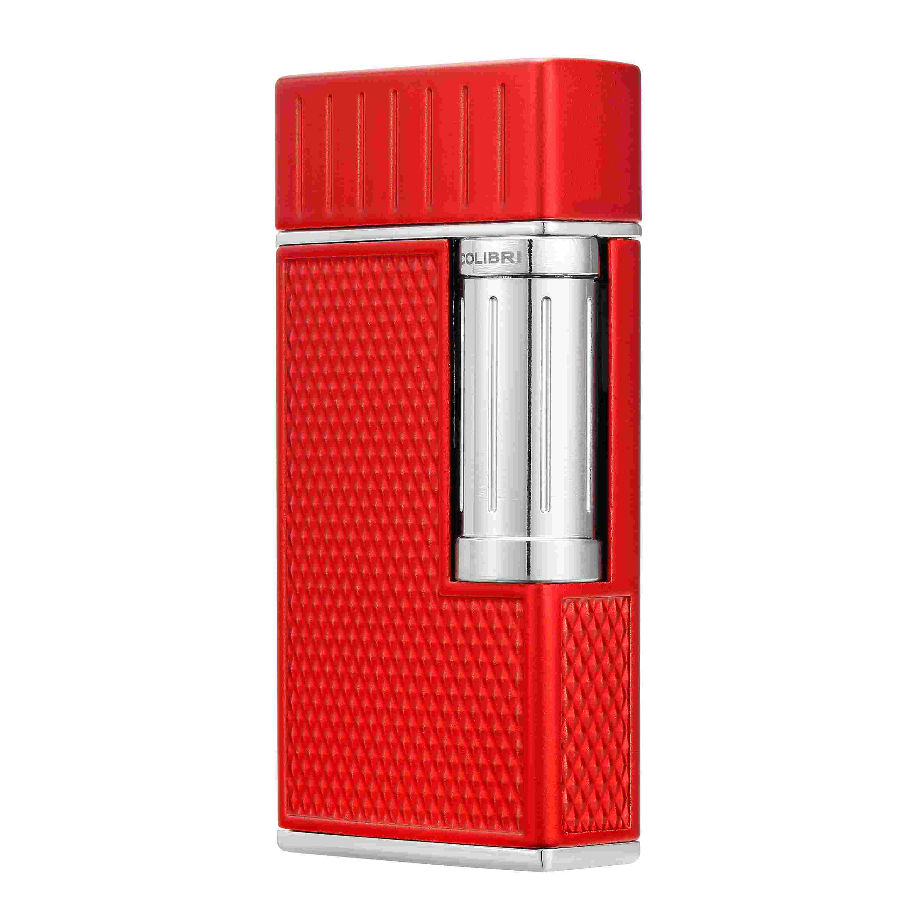 Colibri vuursteenaansteker soft flame Julius Red + Chrome. Deze Colibri aansteker heeft een dubbele soft-vlam en een vuursteen ontsteking. draai de knop aan de zijkant en deze aansteker geeft twee prachtige soft vlammen.