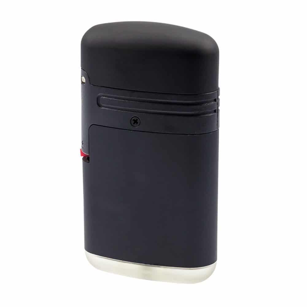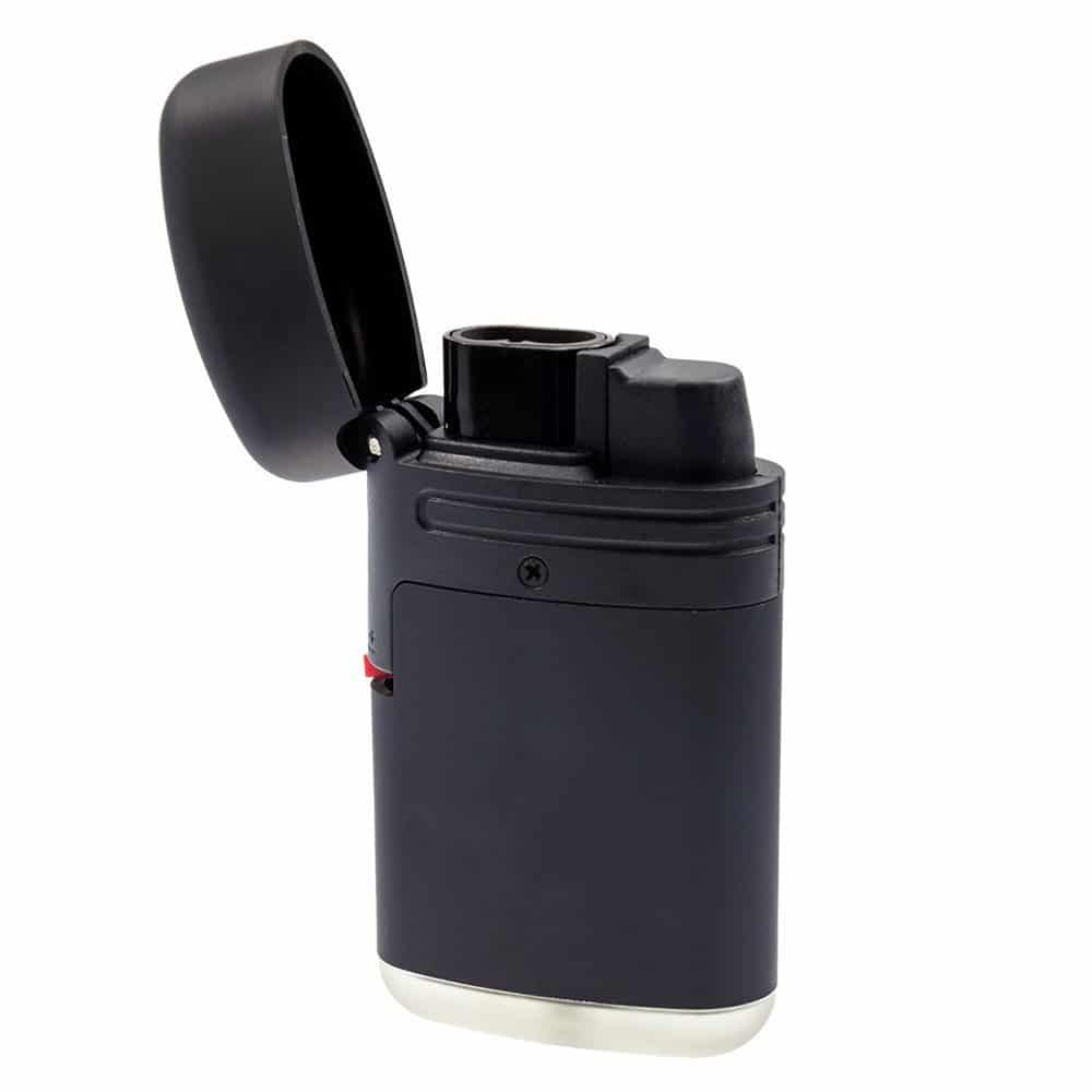 Zwarte dubbele jetflame aansteker met een elektronische ontsteking en een rubberen afwerking. De aansteker van het merk Easy Torch geeft twee krachtige stormvlammen waarvan de vlamhoogte instelbaar is door middel van het rode schuifje aan de zijkant van de aansteker. De aansteker werkt op butaangas en is uiteraard navulbaar.