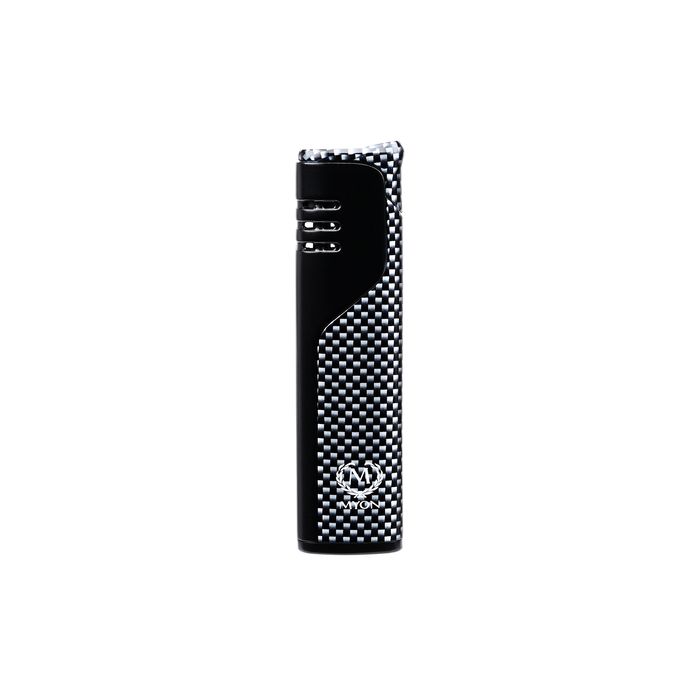 Deze Myon aansteker heeft een Carbon afwerking met zwarte details. De aansteker heeft een elektrische ontsteking met een single jetflame, waarvan de vlamhoogte instelbaar is.