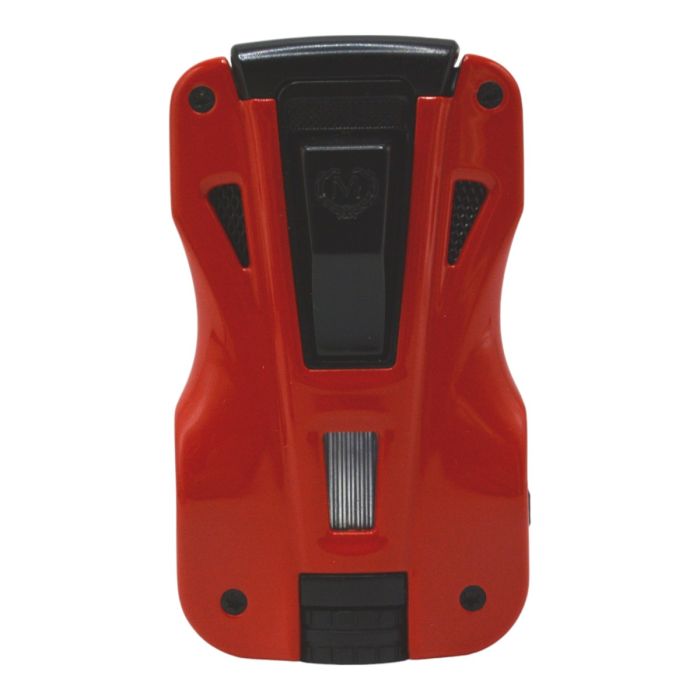 Rode Myon Le Camp sigaren aansteker met een elektrische ontsteking en twee krachtige jet vlammen. Na het openklappen van het klepje kan de aansteker eenvoudig ontstoken worden door middel van de drukknop. Aan de zijkanten van de aansteker zitten twee punches met verschillende afmeting, welke eenvoudig naar buiten geklapt kunnen worden.
