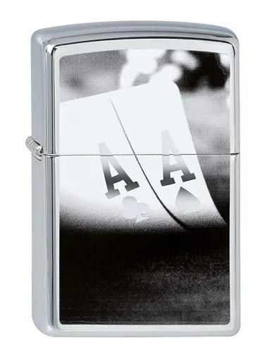 Deze Zippo aansteker heeft een hoogglans chrome afwerking met op de voorzijde van de aansteker een fotoprint van 2x een aas.