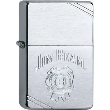 Deze Zippo aansteker heeft een brushed chrome afwerking aan de voor en achterzijde en een hoogglans afwerking aan de zijkanten. Op de voorzijde van deze aansteker is het Jim Beam logo gegraveerd.