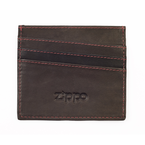 De luxe lederen creditcard houder is afgewerkt met rode stiksels en biedt plaats voor 5 kaarten. In het midden van de voorzijde is het Zippo logo in het leer gestanst.