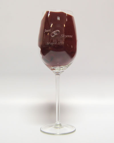 Wijnglas 53cl, inclusief het graveren van uw eigen tekst door middel van een lasergravure. Het glas heeft een hoogte van 253mm.