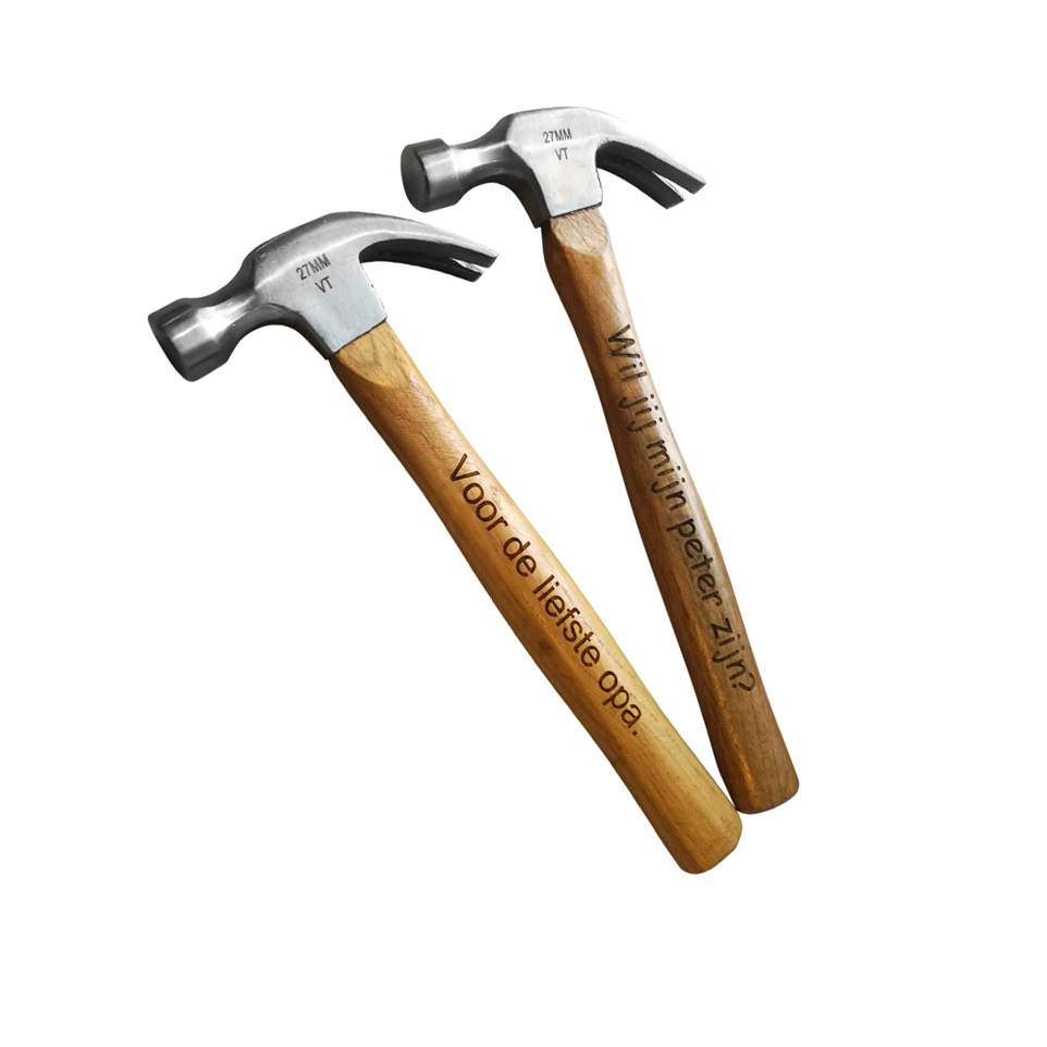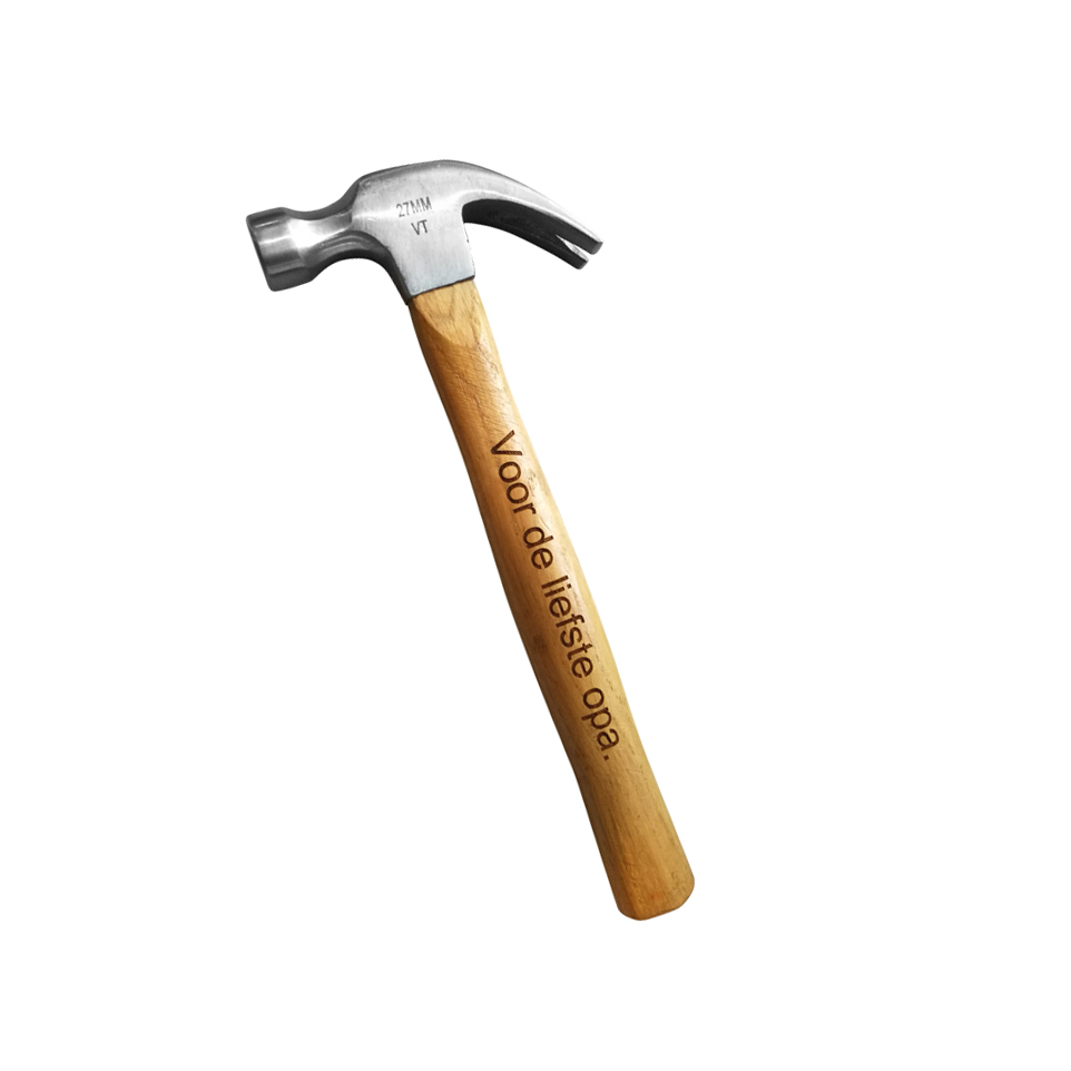 Wat deze klauwhamer echt uniek maakt, is de mogelijkheid om de houten steel te personaliseren met een laser gravure. Of het nu een naam, een speciale datum of een hartverwarmende boodschap is, je maakt van dit functionele gereedschap een onvergetelijk geschenk.