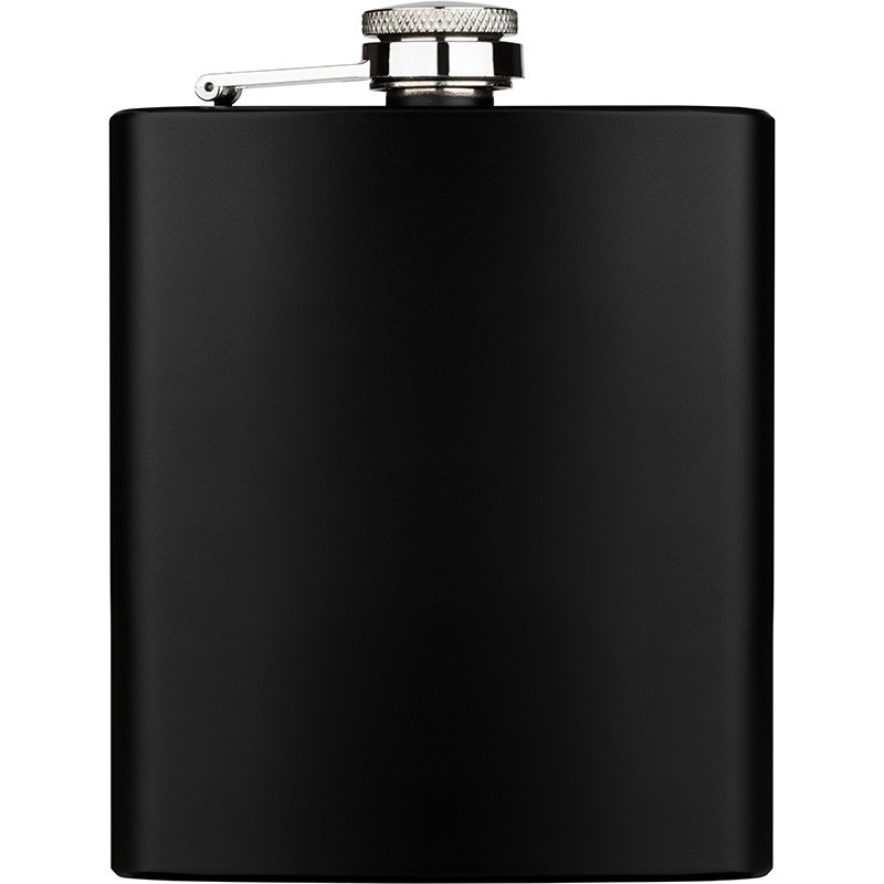 Zwarte RVS drankflacon van het merk Zorr met een inhoud van 6oz, ofwel 180ml, met de tekst...