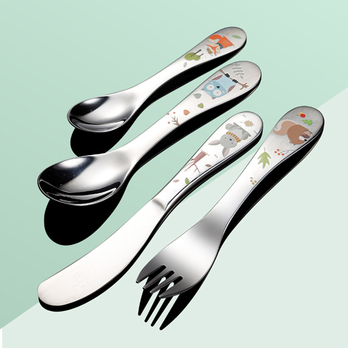 Vanwege kleurbehoud adviseren wij dit kinderbestek niet in de vaatwasser te reinigen.