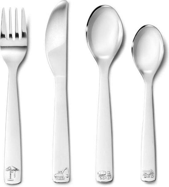 Het kinderbestek met boerderijdieren van het merk Zilverstad is vervaardigd uit RVS en wordt geleverd in een leuke geschenkdoos.