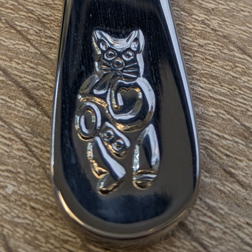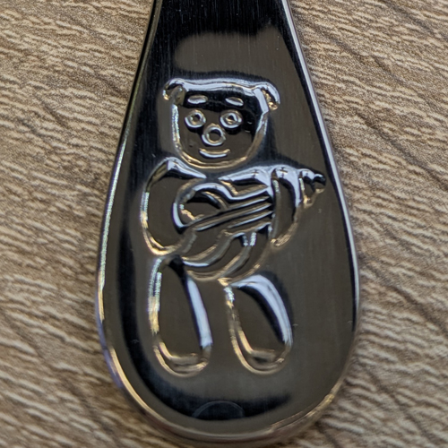 Lepel met onderaan een afbeelding van een konijn met een trommel