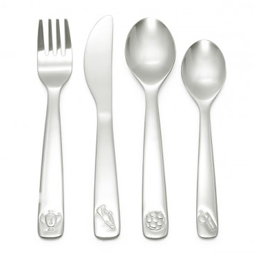 Set kinderbestek voetbal inclusief het graveren van uw eigen tekst.