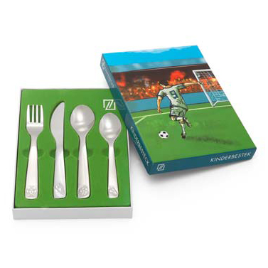 Het voetbal kinderbestek van het merk Zilverstad is vervaardigd uit RVS en wordt geleverd in een leuke geschenkdoos.