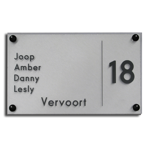 Naambord van plexiglas met een RVS achterplaat in het formaat 25x15cm. Tussen het RVS en plexiglas worden afstandsbuisjes gemonteerd. U heeft de keuze uit een staande of liggende uitvoering.