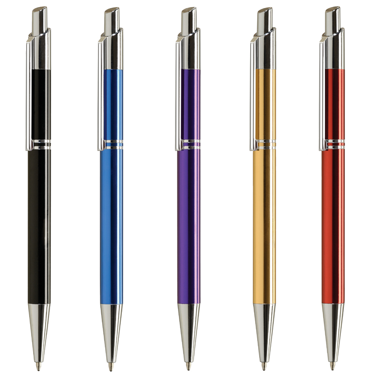 Luxe aluminium pen, verkrijgbaar in de kleuren blauw, zwart, paars, geel en rood. Laat de pen graveren met een persoonlijke tekst naar keuze. Graveren kan op zowel de voor- als achterzijde (+€5,00). Maximaal kunt u 35 tekens per zijde laten graveren in de pen.