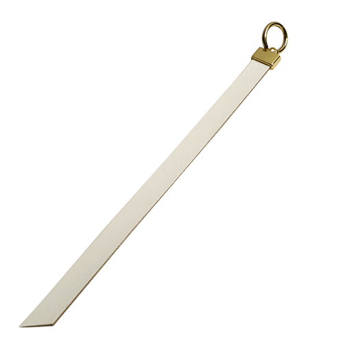 Lederen sleutelhanger label vervaardigd uit echt leer in de kleur white met een metalen hangeroog in de kleur zilver of goud. Het leer heeft een breedte van 10mm en qua lengte kunt u kiezen voor 5cm, 10cm of 15cm. Het graveren van een persoonlijke tekst is bij de prijs inbegrepen. U kunt de tekst in de sleutelhanger laten graveren in een lettertype naar keuze: