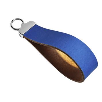 Lederen sleutelhanger label vervaardigd uit echt leer in de kleur kobalt met een metalen hangeroog in de kleur zilver of goud. Het leer heeft een breedte van 20mm en kunt u laten graveren met maximaal twee regels tekst aan de voorzijde. Voor een meerprijs van €5,00 is het ook mogelijk om een tekst aan de achterkant te laten graveren. U kunt de tekst in de sleutelhanger laten graveren in een lettertype naar keuze: