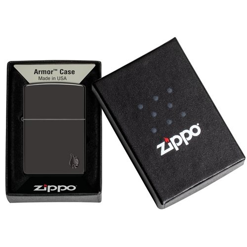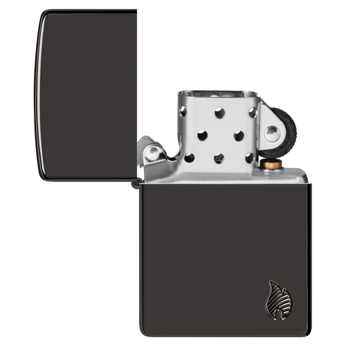 Deze Zippo aansteker heeft  een High Polish Black afwerking met rechts onder een gravure van het Zippo logo.