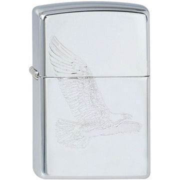 Zippo Flying Eagle Chrome met Zippo code 2.002.022. Deze Zippo heeft een hoogglans afwerking.