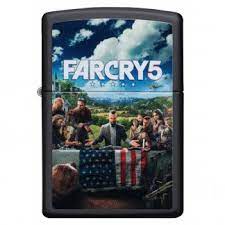 De mat zwarte Zippo aansteker is aan de voorzijde voorzien van een slijtvaste print over het bekende spel Far Cry 5 van Ubisoft.
