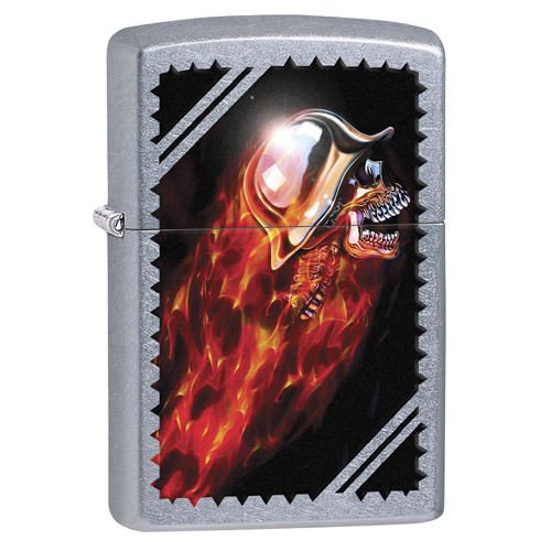 Zippo Mechanic Skull. Deze Zippo aansteker heeft een street chrome afwerking en aan de voorzijde...