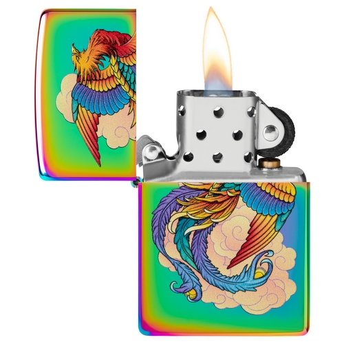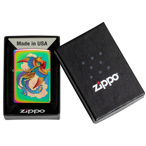 Prisma Gekleurde Zippo met aan de voorzijde een opdruk van een Phoenix.