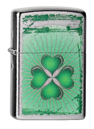 Zippo aansteker met een afbeelding van een klavertje vier.