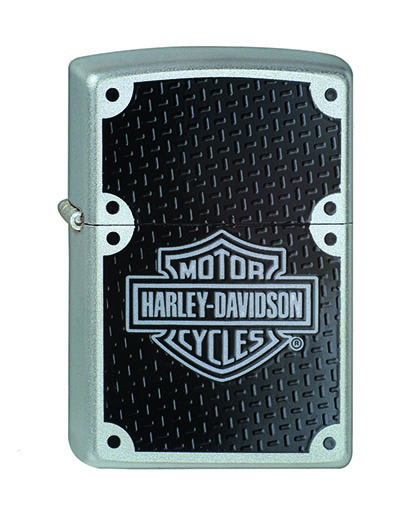 Deze Zippo heeft een satin finish afwerking. Op de voorkant van de aansteker is een afbeelding van carbon fiber met daarin het Harley Davidson logo te zien.