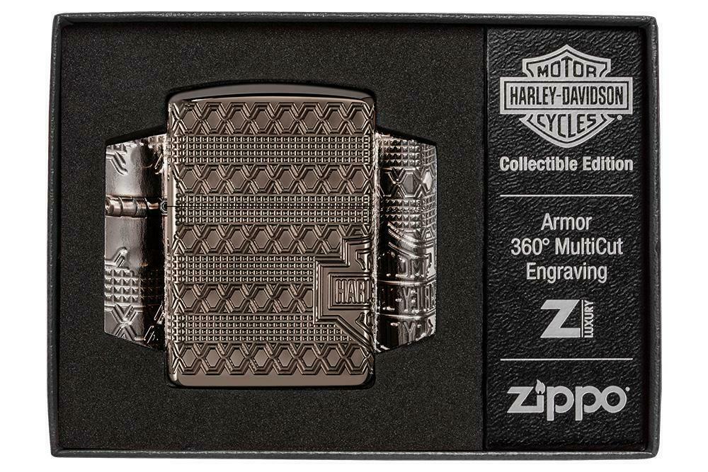 Deze Zippo aansteker is een Armor Black Ice en voorzien van MultiCut banden van zeshoeken en rijen van gefacetteerde studs. Het iconische Harley-Davidson zorgt voor de perfecte finishing touch. Ook is elke aansteker is met een laser gegraveerd op het deksel, waardoor het een officieel 2021 Harley-Davidson® Collectible is.