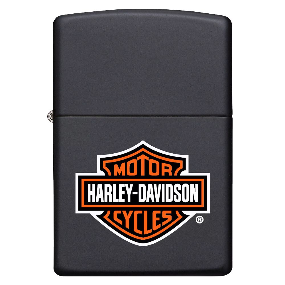 De Zippo Harley Davidson Bar & Shield is matt zwart afgewerkt en aan de voorzijde een opdruk van het Harley Davidson logo.