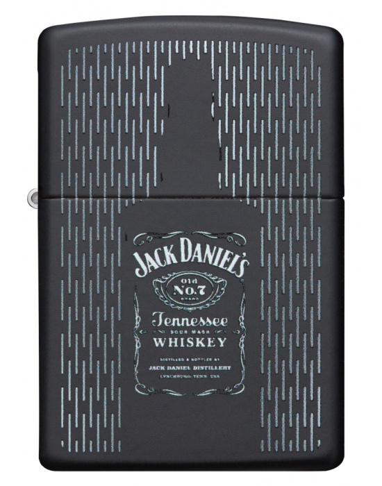 Deze Zippo aansteker uit de Jack Daniel's collectie heeft een mat zwarte afwerking. De Zippo werkt op benzine en is voorzien van een zwart witte opdruk van een fles Jack Daniels. Deze Zippo kunt u aan de achterkant door ons laten personaliseren met een naam of tekst naar keuze.