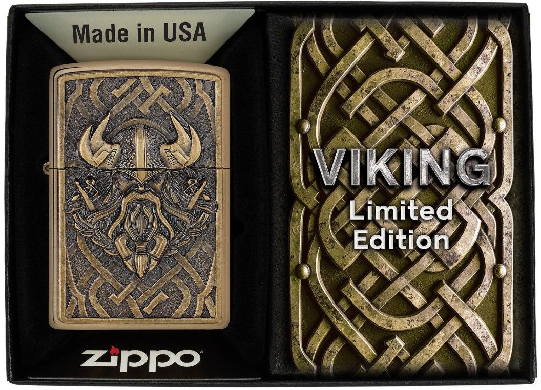 De Zippo Viking Limited Edition is geborsteld brass afgewerkt met aan de voorzijde een embleem, waarop een Viking te zien is. Dit is een gelimiteerde uitgave van 2000 stuks, waarvan de nummering op de achterzijde van de Zippo is gegraveerd.