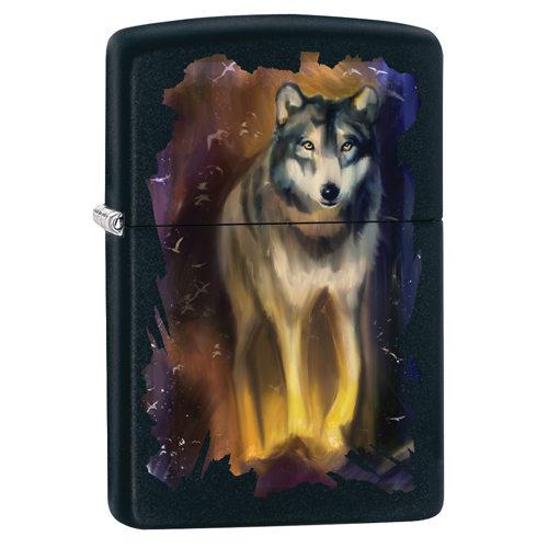 De Zippo wolf is een matzwarte Zippo aansteker uit de Zippo Nature collectie. Deze benzine aansteker is voorzien van een fraaie, slijtvaste kleurenafbeelding waar een wolf op wordt afgebeeld.